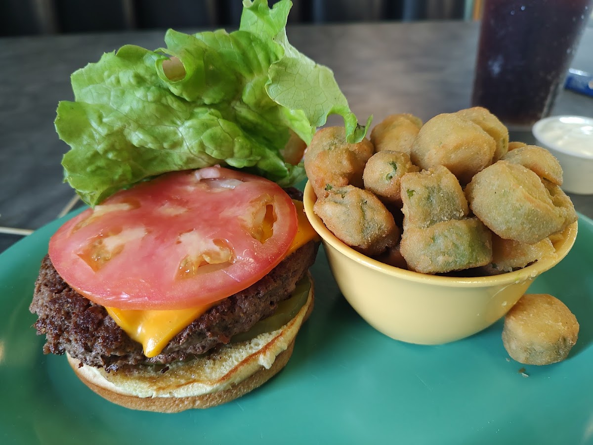 My family was traveling through Hilliard, FL headed to Hinesville, GA. We stopped at Five .5 Grille an hour about closing. This place is tucked in a small strip mall and isn’t anything fancy. It is a mix of diner/sporty bar. There were tv mounted around the dining area, an ice cream shop area, and quarter games: like a gum ball machine and claw machine. It seemed a place we’d bring our kids. There was even a framed prayer on the wall, we prayed before our meal. The waitress was friendly and prompt with getting drinks, our order, and all-around great service. We are huge water drinkers but the water was nasty. It was too late for a soda, so we ordered a beer. Beer has a minimal selection but it was fine. There were so many options on the menu. We ordered the BBQ Bacon Cheeseburger and the Pickle Cheeseburger. Man, these burgers were great, huge, and messy! I loved the paper towels for napkins, just like home. The portions were large. I would definitely recommend this place and will stop by driving through Hilliard. Ask the staff the reason for the name of the restaurant.